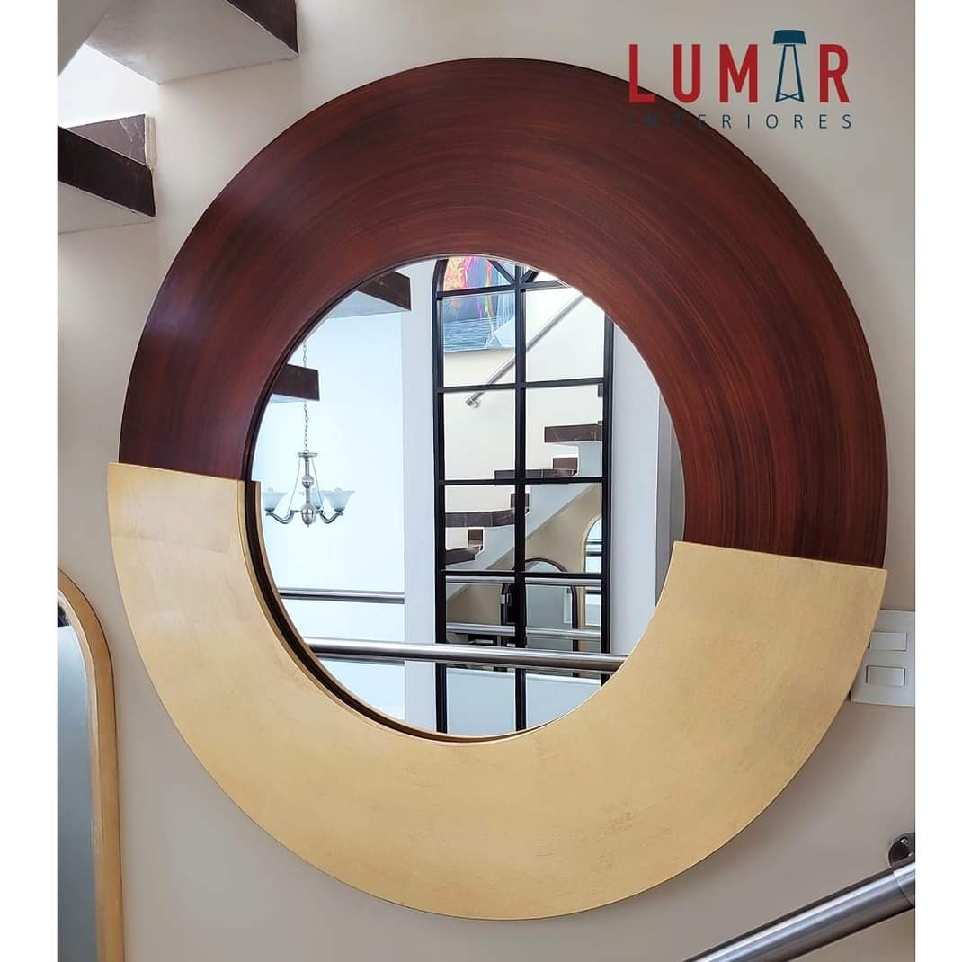Espejo Redondo Bicolor. Puedes pedir la combinación deseada después hacer tu compra. SOLO DOS OPCIONES ABAJO ES HOJA DE ORO Y ARRIBA PUEDES CAMBIAR EL COLOR ÚNICAMENTE.