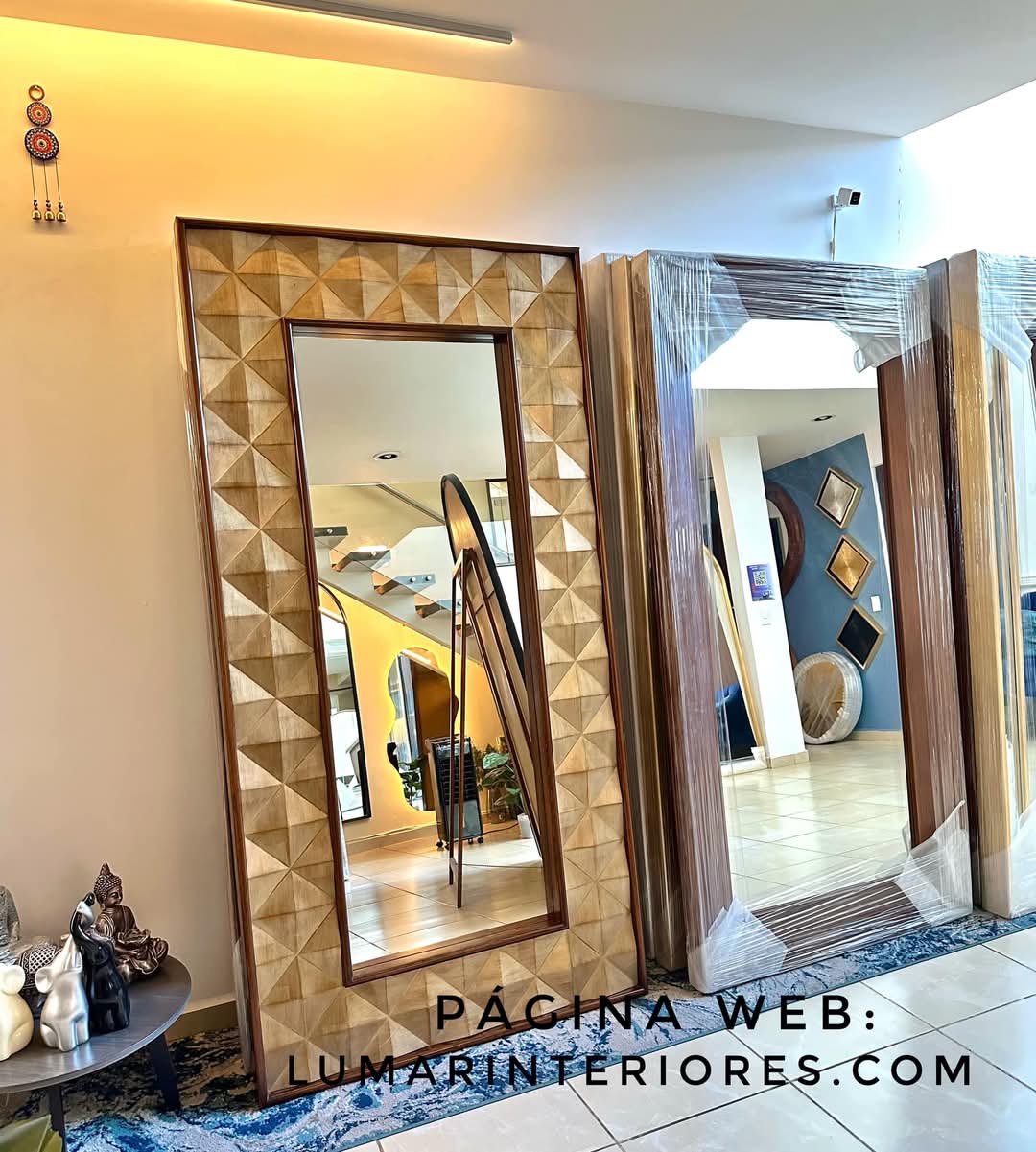 Espejo fabricado en pino horneado medida 200x100cm. Color champagne al centro y exterior en nogal. Si desea cambiar el color puede hacer después de hacer su compra en linea. Puede ir colgado en horizontal o vertical.