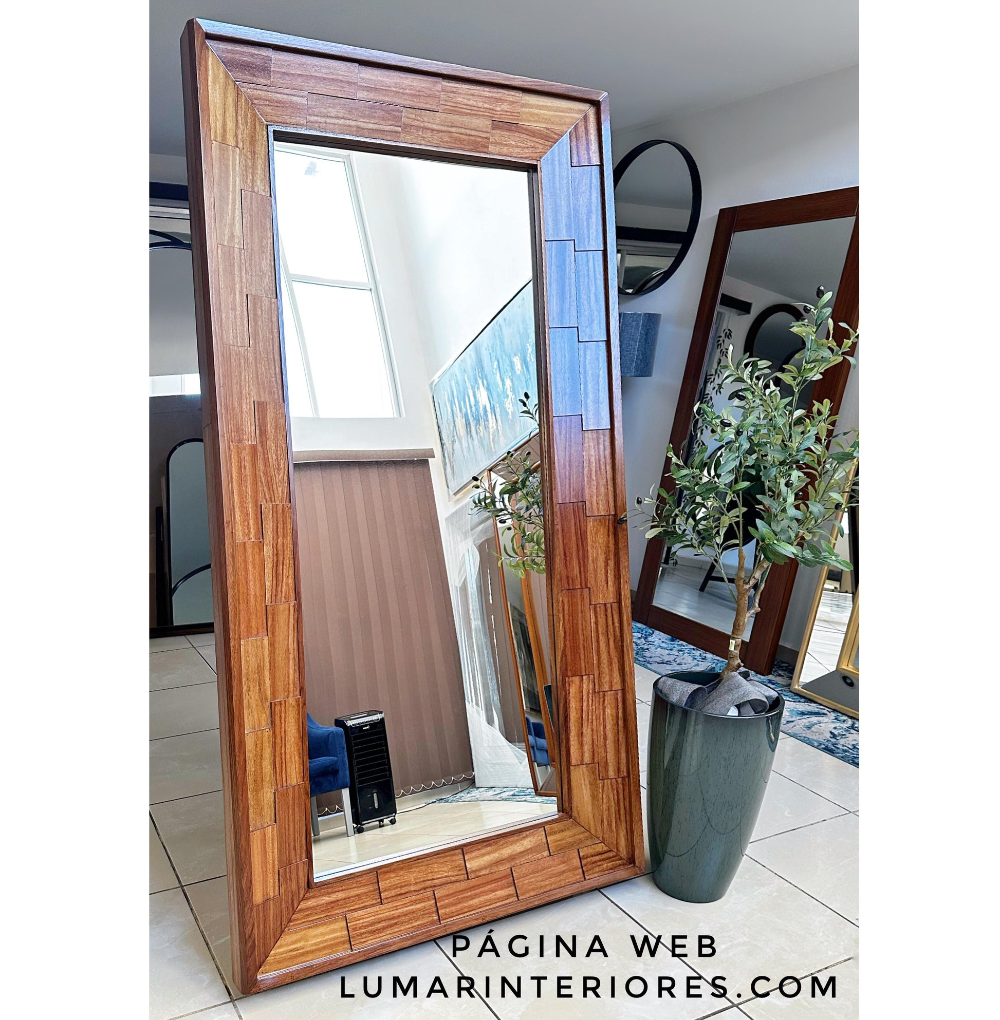 Espejo modelo granate fabricado en madera parota. Dos medidas disponibles 200x100 y 200x120cm. Puede ir colgado en vertical o en horizontal, o de piso.
