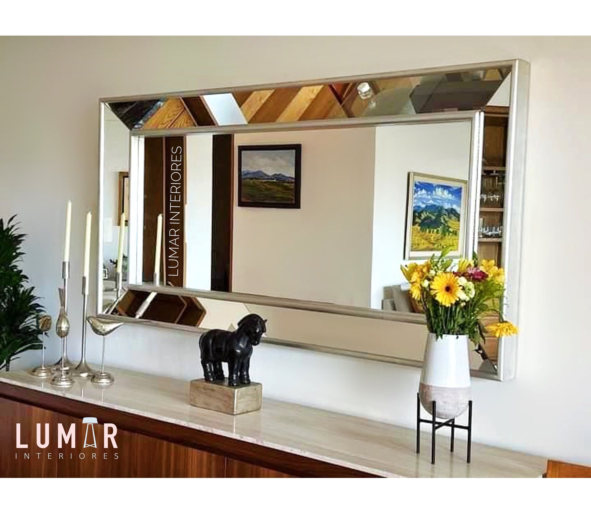 Los espejos pueden ir colgados vertical u horizontalmente, asÍ como recargados (de piso). Tratamiento de poliuretano.